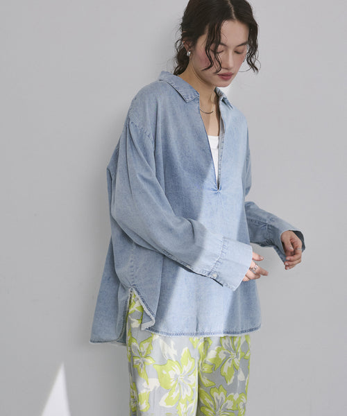 ブロード/テンセルデニム スキッパーシャツ