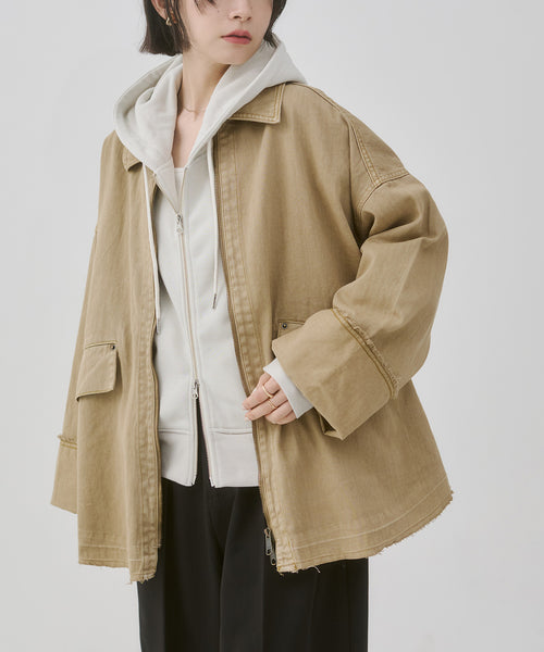 リブダブルジップパーカー