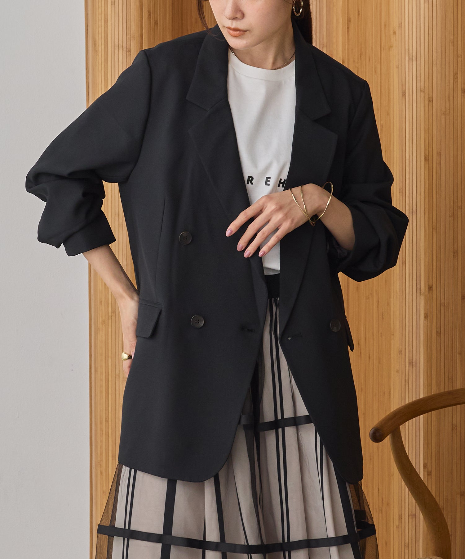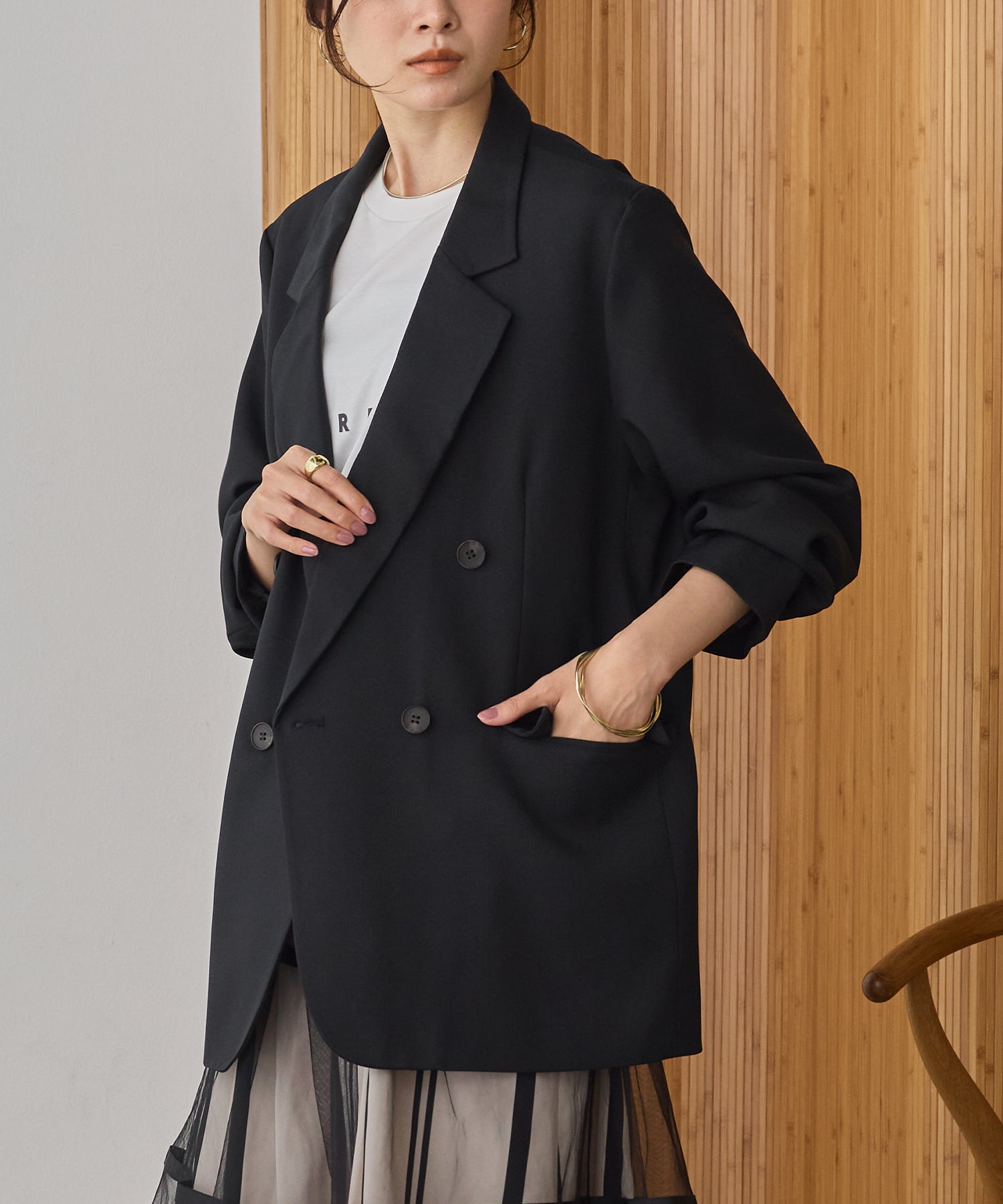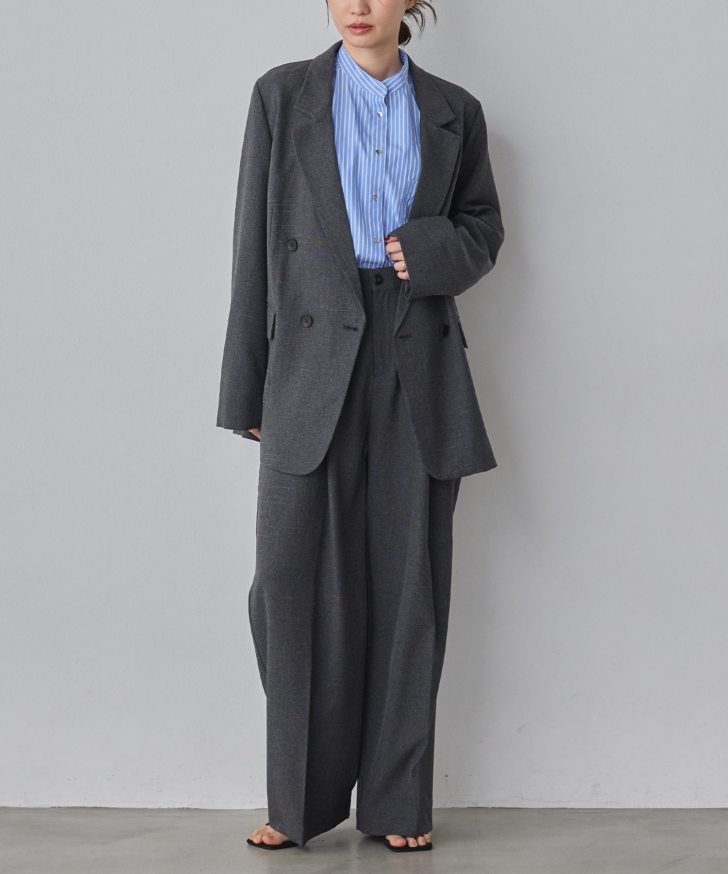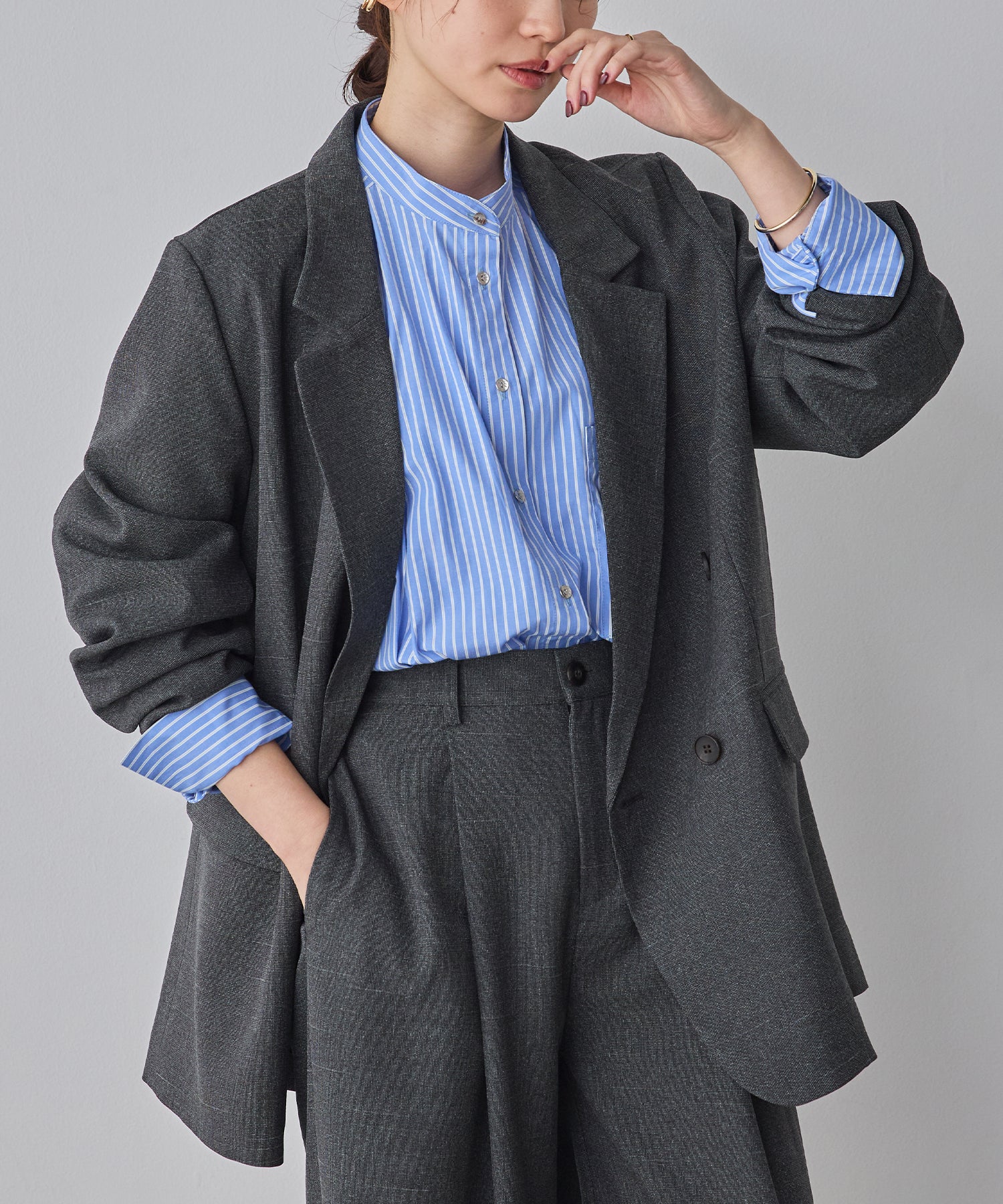 ダブル仕様なので釦を開けてゆったり着て頂くのもおすすめです。